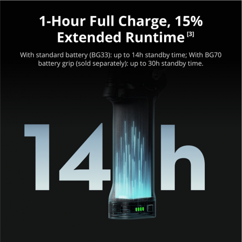 | وقت التشغيل | حوالي ١٤ ساعة | يتحقق وقت التشغيل الذي يصل إلى ١٤ ساعة باستخدام مقبض البطارية DJI RS BG33. |
