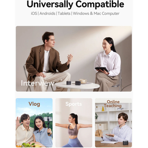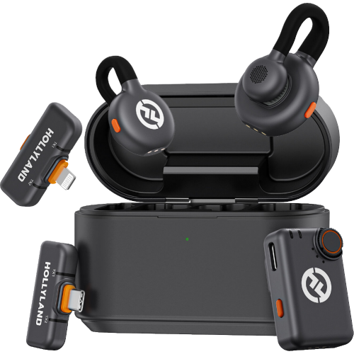 قم بتسجل ما يصل إلى شخصين في تطبيقات الصحافة المحمولة أو إنشاء المحتوى باستخدام LARK M2S Ultimate Combo Wireless Microphone System من Hollyland.