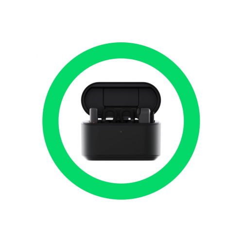 - صُممت علبة الشحن خصيصًا لاستيعاب جميع وحدات الاستقبال والإرسال. بطاريتها الداخلية بسعة 1300 مللي أمبير/ساعة تُمكّنك من شحن النظام بأكمله عدة مرات لعمر بطارية يصل إلى 30 ساعة.