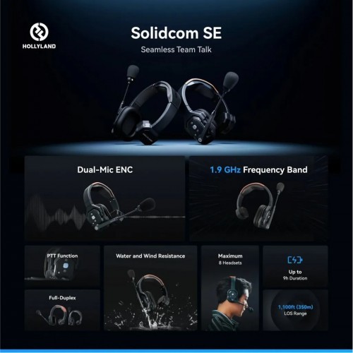 Hollyland Solidcom SE 6S 6-Person Full-Duplex Single-Ear Noise-Canceling Headset Intercom System